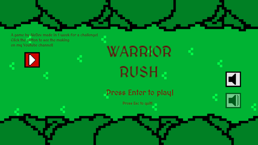 Hello everyone! I made a game in 1 week as a challenge on my youtube channel. Here it is the process: https://www.youtube.com/watch?v=OPluLmq104Q also if you want to play it go here: https://aledeveloper.itch.io/warrior-rush it's free!