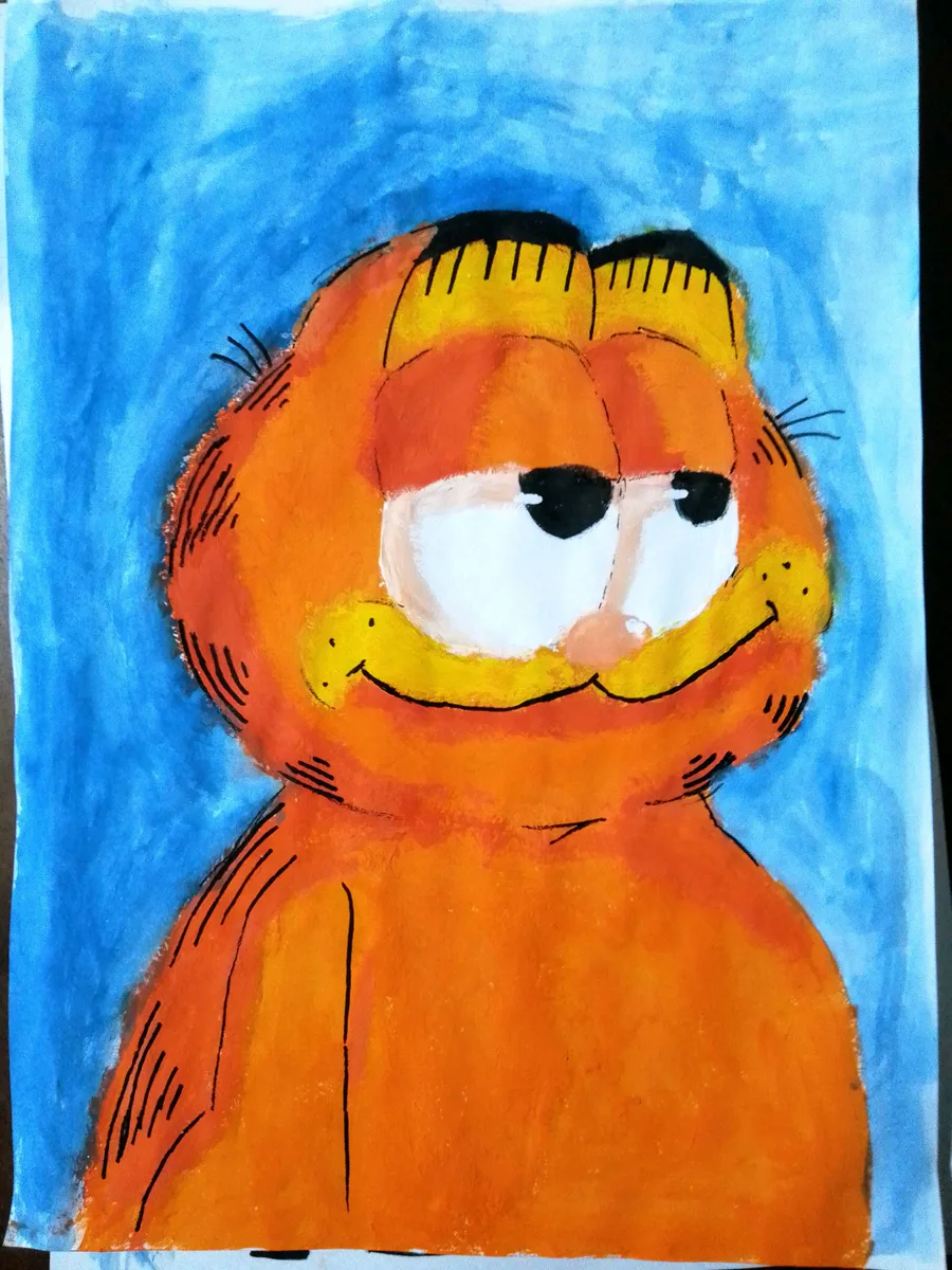 Here I finished this painting of the silly cat who hates Mondays for a school assignment.