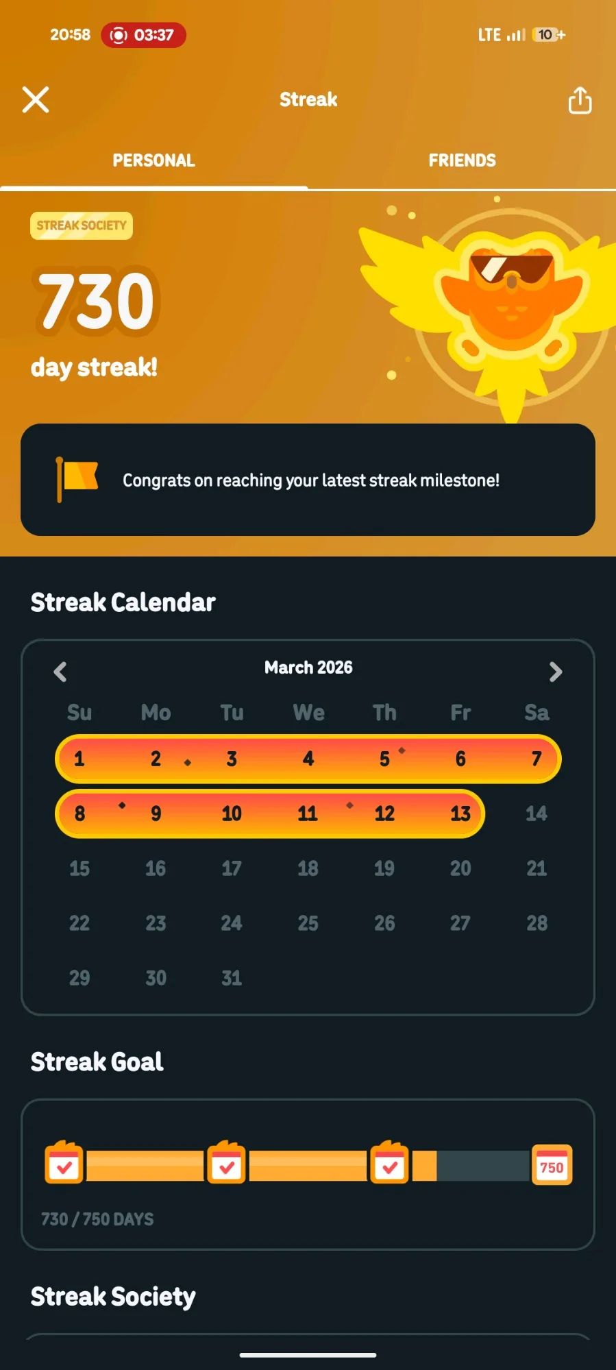 Guys. I got... A 730 DAY DUOLINGO STREAK??? Duolingo Streak is 730 Days or 2 Years!