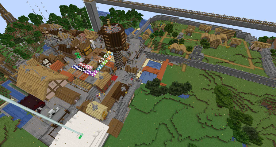 Post your #minecraft survival bases in screenshots! This is mine, fortified, extended and vitalized an existing village into a sprawling town.