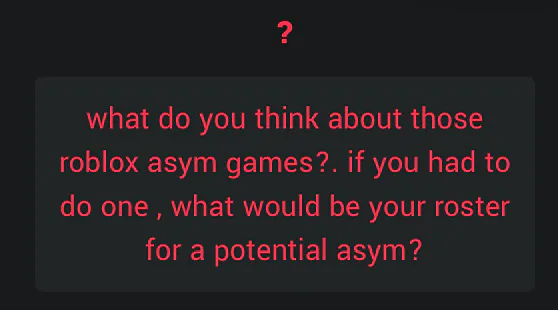 I like Roblox asym games. But it’s kinda one of those things where I wouldn’t willingly play it alone. it’s more enjoyable with friends. Atleast for me—