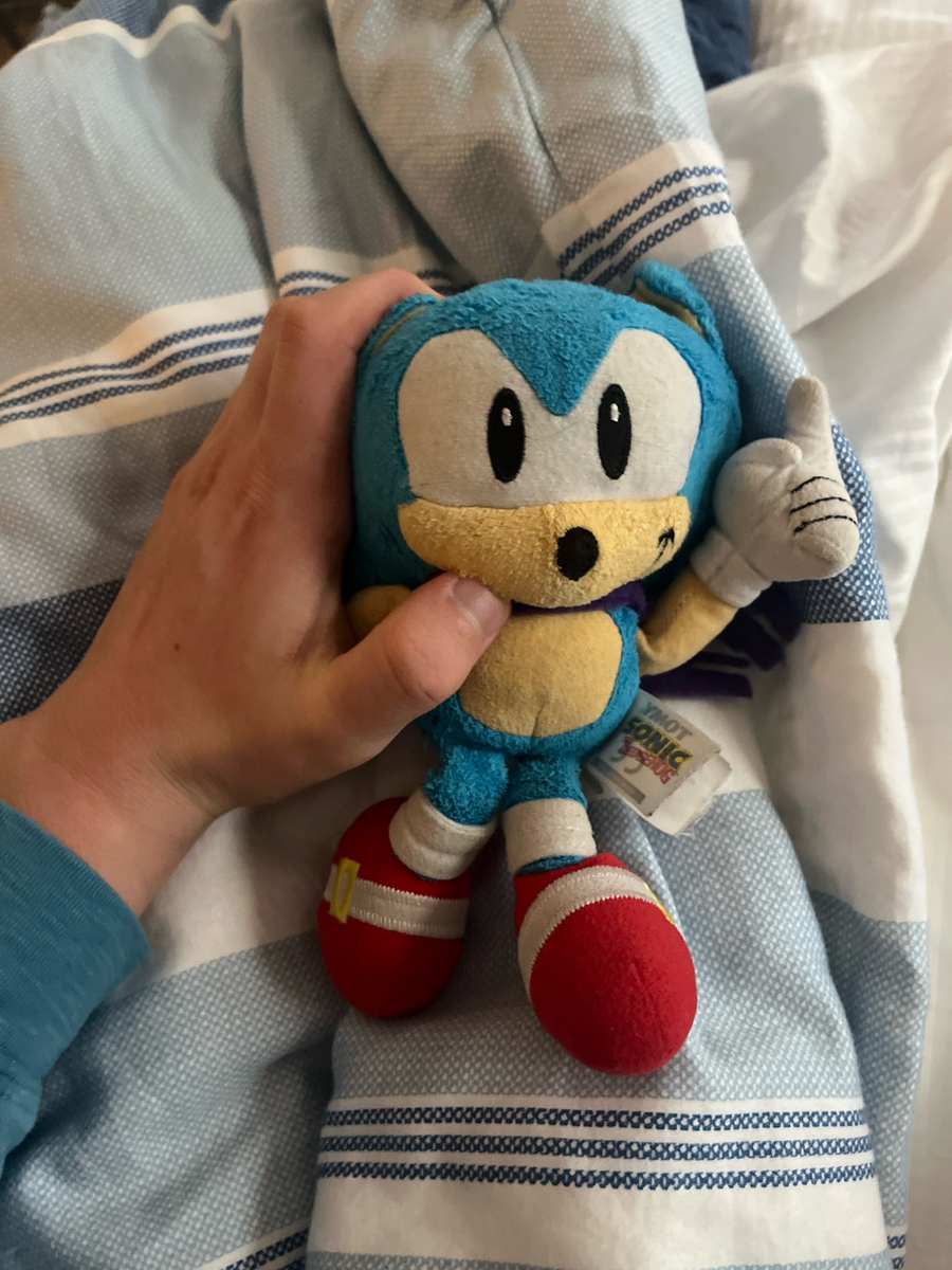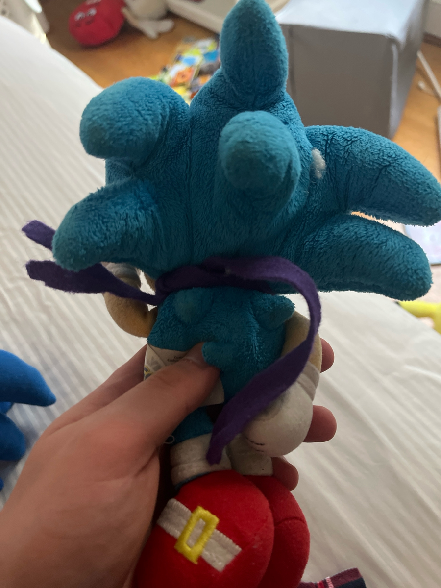 My little brother made a felt scarf for plushies a few months ago and i put it on my classic sonk plushie :3