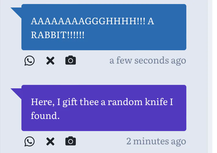 3: *takes the knife back and stabs you* nobody takes my knives