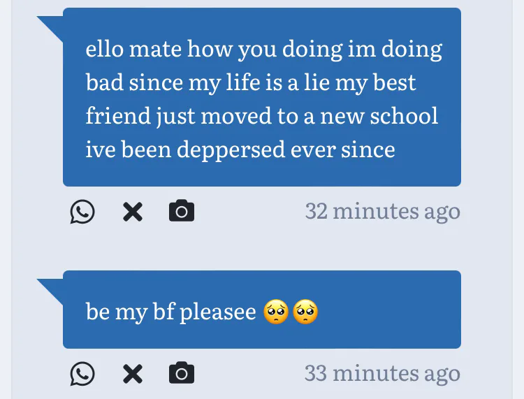1: *hugs u* hey sometimes these things happen I’m sure you too will meet again soon