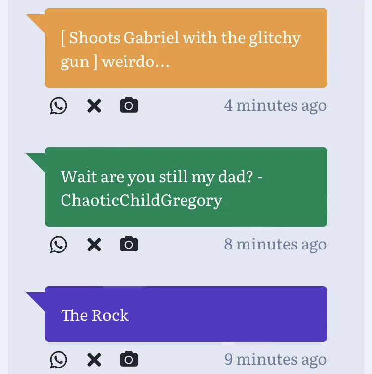 2: thats my child you idiot *pulls out a massive glitchy gun* Massive Rasengun *shoots u*