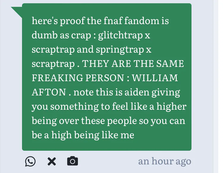 And if u follow the fanmade lore it will be shipping Vincent and William together BUT THEY ARE BROTHERS LIKE WTF IS WRONG WITH PEOPLE