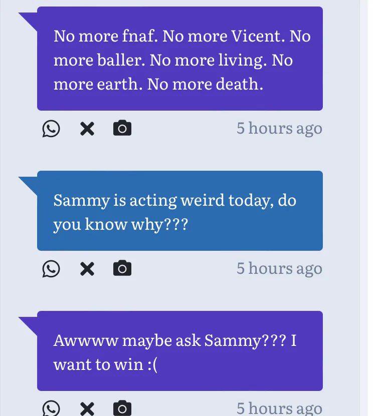 1: in your dreams kid *pulls out a massive Glitchy gun* go to hell *shoots u*