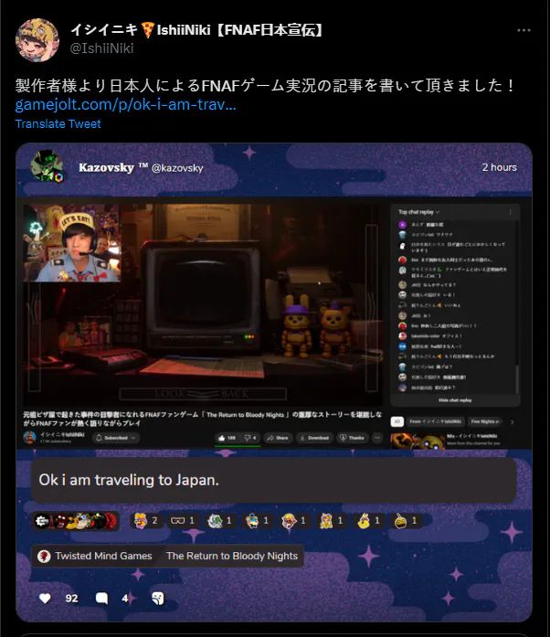 1I played in the return to bloody nights and I'm ready to say that we are not worthy of this project. the quality is at the highest level, even just looking at the cameras or hearing the mouse running! Kazovsky did a great job! 200 freddy out of 10