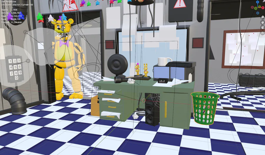 Found very old files from the very first fan game made back in 2016. It's the office of Bloody Nights at Freddy's, demo of which is still available on GJ. This is history now but provides a good look at how modeling of @sealdude ![]()