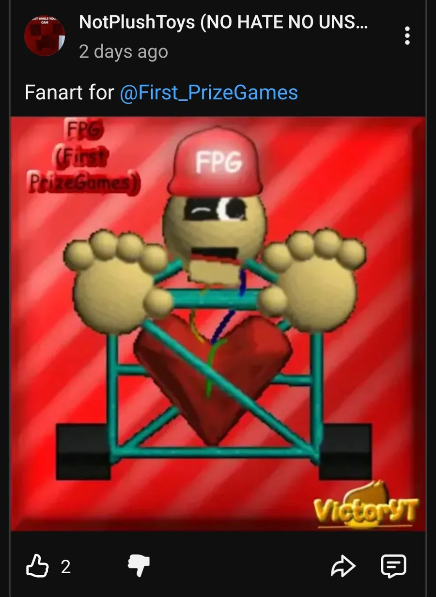 Guys bad news a youtube bad user stole my post and picture from my channel it's called NotPlushToyz (in yt) stole my post from youtube when I made a fanart for my friend First PrizeGames