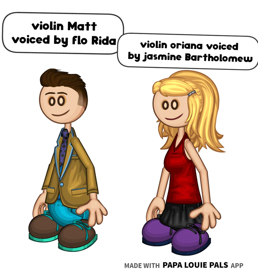 violin Matt is voiced by flo Rida violin oriana is voiced by jasmine Bartholomew from the coiny show