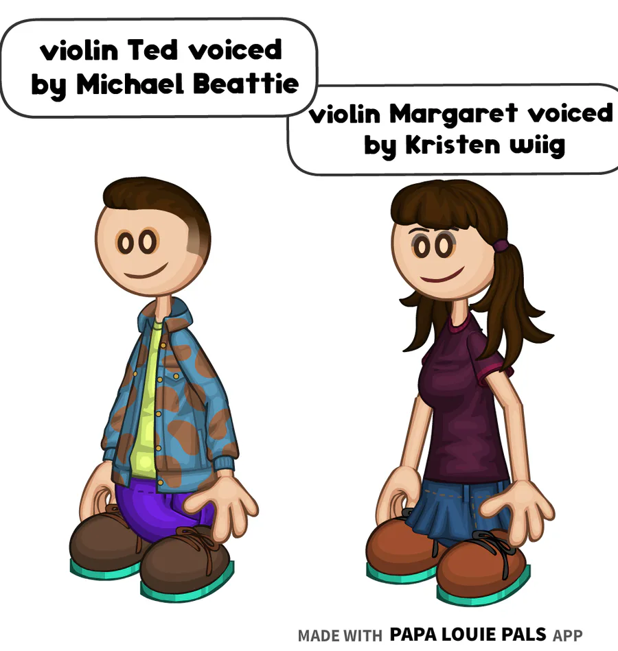 violin Ted is voiced by Michael Beattie violin Margaret is voiced by Kristen wiig from the coiny show