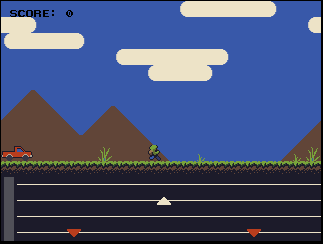 Play using the four arrow keys. Press the arrow key that matches the arrows onscreen as they enter the highlighted area at the bottom left. Missing an arrow spawns obstacles which knock the player back. You lose when the player gets hit by the truck. The game gets faster and harder over time.
