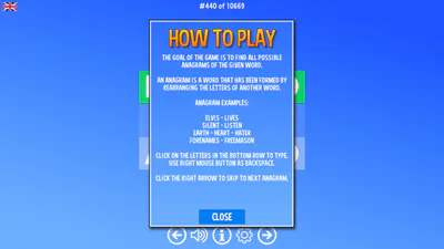 Find all Anagrams for the given word. Works in english, spanish or german language. Playable in Browser or as download for Windows and Android. #other