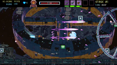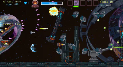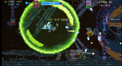 Take control of a sassy space-cat pilot and her over-chatty robot companion on a high-stakes journey back to Earth. Armed to the whiskers with powerful weapons and power-ups, you’ll blast through waves of enemies in a bullet-hell, action-packed shoot ’em up overflowing with cattitude!