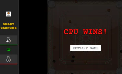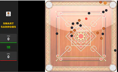 Play Carroms board game against AI opponent and score 55 to win