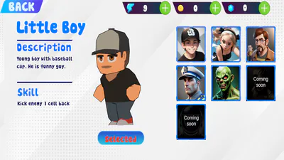 *This game is a board game with dice, there are many characters with different skill to run and defeat each other in the game. Each map has many obstacles, user will roll a dice to go forward and win a game.