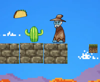 this is the story of El Humbro a blue mexican dude that lost his goat you need to eat all the tacos avoid deadly sentient cactai and falling to death and save your loving goat !