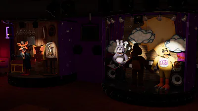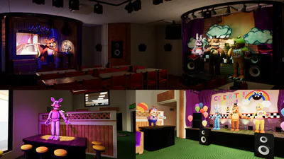 Rock and roll is here to stay, and so are we! Faz-Anim: Franchised Tour is an animatronic simulation game based on YOUR visits to different Fredbear's Family Diner and Freddy Fazbear's Pizza Place locations, watching and programming shows on the different stages available! Using the RR-Engine you can now control the cartoony movements of Fredbear, Bonnie, and the rest of the Fazbear Band. Experience the magic of the original Fredbear's era show of the 1970s and '80s, the Classic Characters of the 1990s, the highly advanced Toys of the 2000s, or the controversial Rockstars of the 2010s: the gang's all here! Have fun, and remember to smile: YOU are the face of Freddy Fazbear's Pizza!
