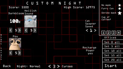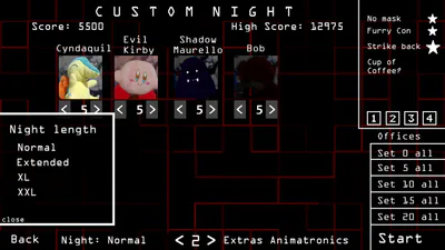 • New options on Custom Night! Now additionally you can add debuffs to the night. These are optional and you can use them in any challenge.