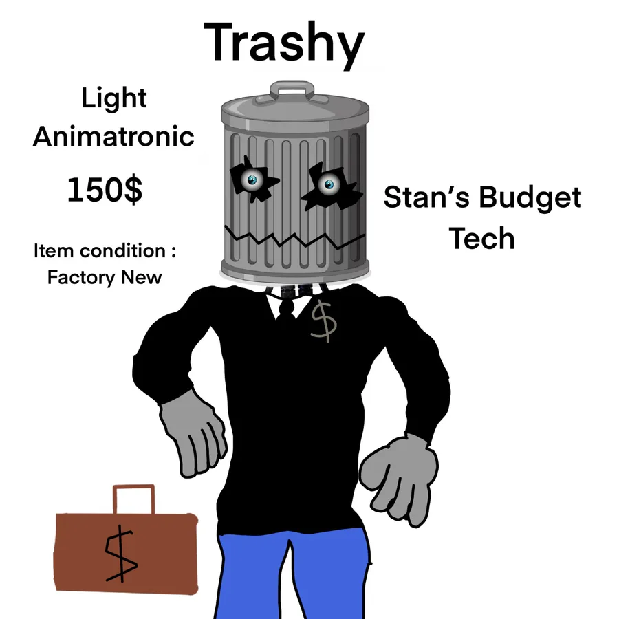 You sign up for a part time job as a night guard in a failing childrens animatronic pizza place called Trashy's Pizza Show . You have the night watch from the hours 0 am to 6 am (opening time) , what could go wrong? #fangame #horror #fnaf #action #adventure #analog #pointnclick #fnaf