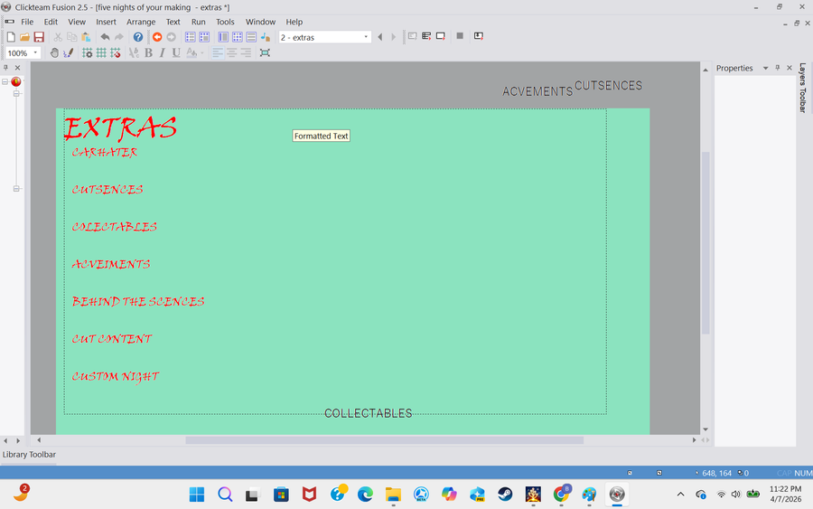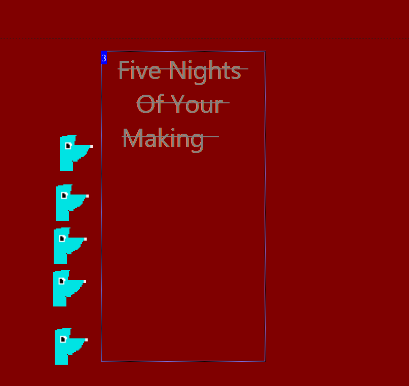 Devlog 1 So I started working on the game yesterday and here what I have first off I made a very early menu design second I made a head of on of the animatronics that will be used on the menu screen to accesses different parts of the menu Well that is all