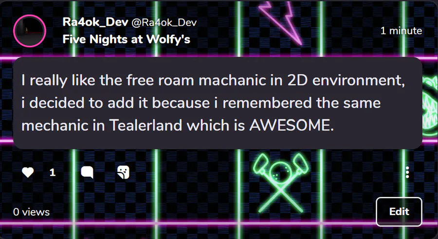 I really like the free roam machanic in 2D environment, i decided to add it because i remembered the same mechanic in Tealerland which is AWESOME.