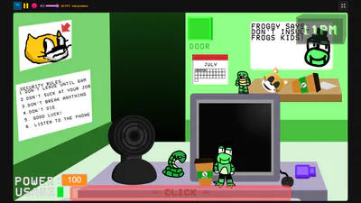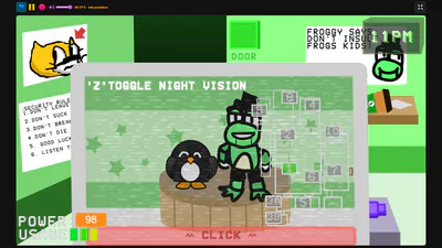 It is 2005 a company has open a restaurant named Froggy's Diner and you take shifts for 2 nights there. But the animatronics are strangely trying to kill you. They aren't haunted by spirits of some sort, but it might be that someone is modifying their code and or is using a remote connection.
