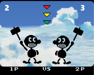 A Rebuilt version of the Game & Watch Game "Judge". The player with the higher or same number as the other player must swing their hammer, while the one with the lower number must dodge.
