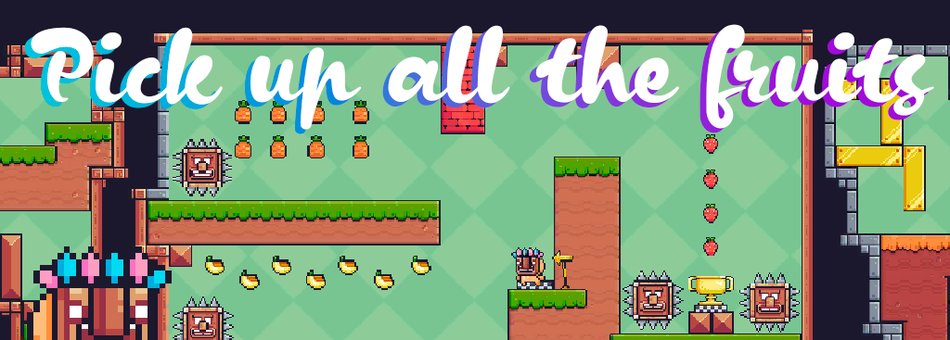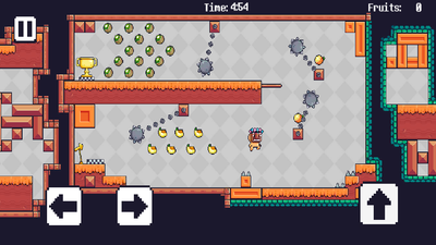 There are legends that somewhere on the levels there are secret messages from the main villain, Mask, who planned to steal all the fruits, but on the way to his castle he lost half of all the fruits. With the help of messages you can find the way to the villain and once and for all eradicate evil from this world, and let everyone hear your battle cry "Jump, mask!"