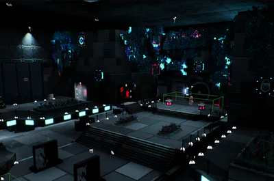 Live and Kicking, codenamed 'Neon', is a First-person shooter set in a dystopian cyberpunk world ruled by megacorperations. You work as part of an underground group working to disrupt the system by stealing valuable information from the power that be, seeking to disrupt their dealings late one night by performing a heist on a high rise guarded by a small army of robots.