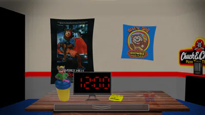 I never focus on story with my games, but this one is slightly more story heavy than my others. Slightly. The year is 1996, you are Jonathan Daxter, a 17 year old desperate for a job. You see a position for night guard for a local Chuck E Cheese's. On your first night, you notice a sticky note with a phone number and "call me" hastily written on it. You call, and the previous guard, David Wilson, answers. He tells you everything you need to know about the animatronics, which have become violent for unknown reasons. Can you survive?