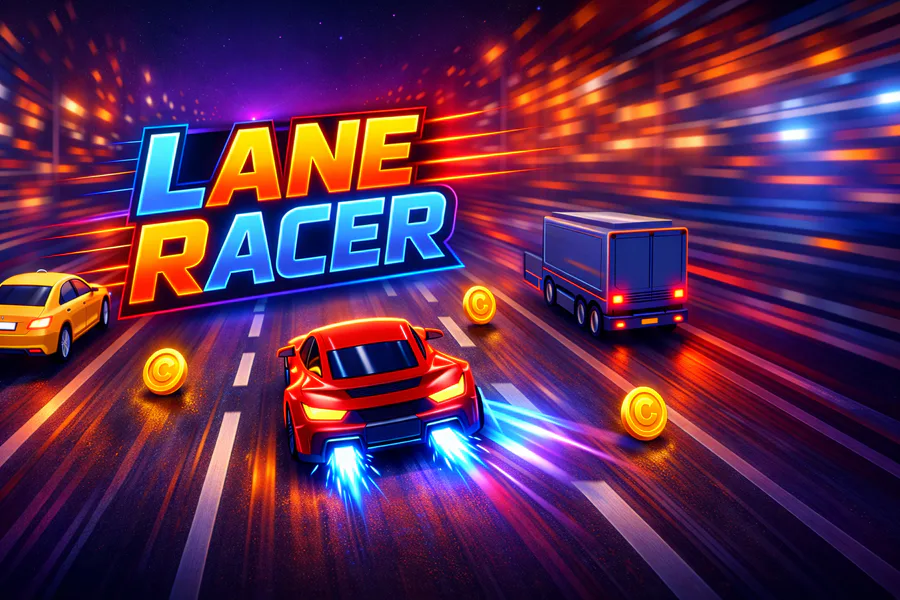Lane Racer is a fast-paced top-down racing game where quick reflexes are the key to survival. Dodge oncoming traffic, collect coins, and push your speed to the limit as the road gets faster and more dangerous.