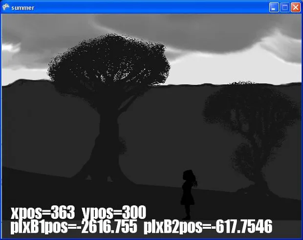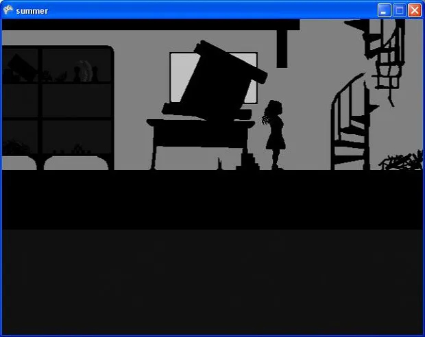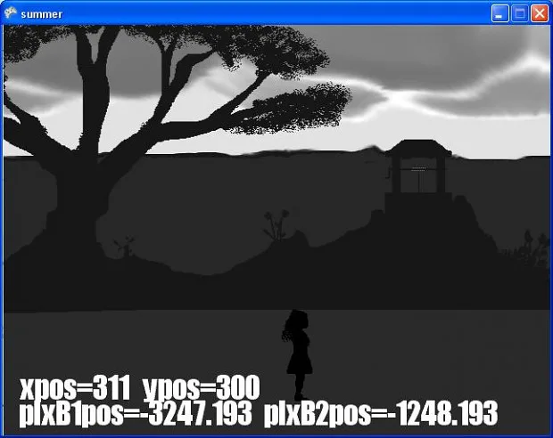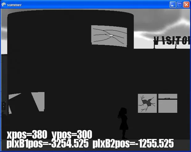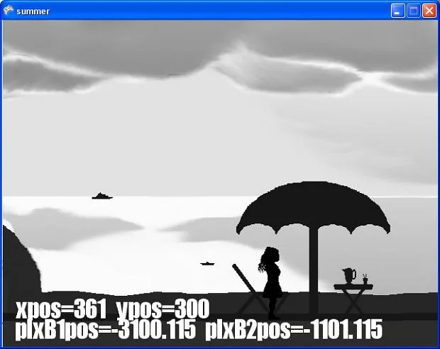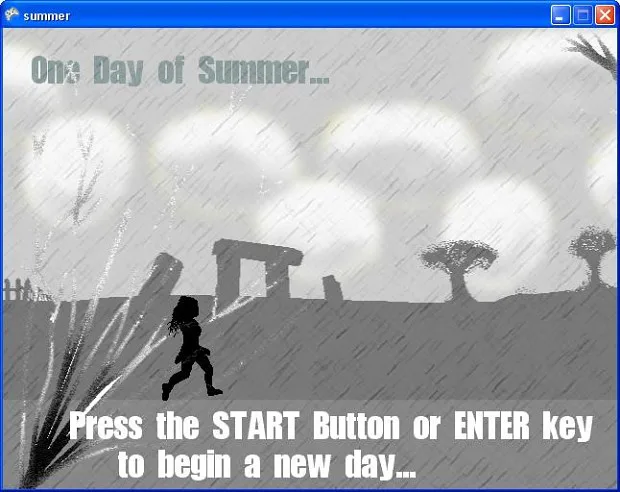 One Day of Summer is a 2D, side scrolling, open-world, point-and-click, non-adventure game that takes place over 25 different locations. Some of these directly scroll on from others, while some need to be entered by performing actions at specific locations.
