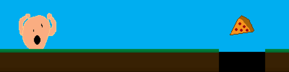 Welcome to Pizza Quest! In this world you are Gerald of the Gerald's, (just some random guy) and you have seen pizza! You CANNOT let it escape uneaten, even if that means... jumping into a deep... hole. This is the first project that I've made so pls don't be to harsh (it also just isn't finished obviously). #platformer #retro