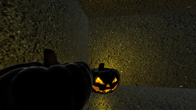 A Halloween pumpkin will be helping you. It will light the entire path, as it's very dark there. There will also be pumpkins throughout the basement that will also help you find the skull.