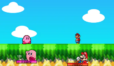 This Super Smash Bros. fangame, created in Scratch with the Turbo Warp extension, aims to bring characters requested by the community to life. For now, this first version (1.0.0) only includes four fighters: Mario (Super Mario Bros. Saga), Kirby (Kirby Saga), Pepsiman (Pepsiman PS1), and Niko (Oneshot). Each fighter has two moves that Player 1 executes with the N and M keys, and Player 2 with the Z and X keys. This is just a demo. #strategy #multiplayer #other