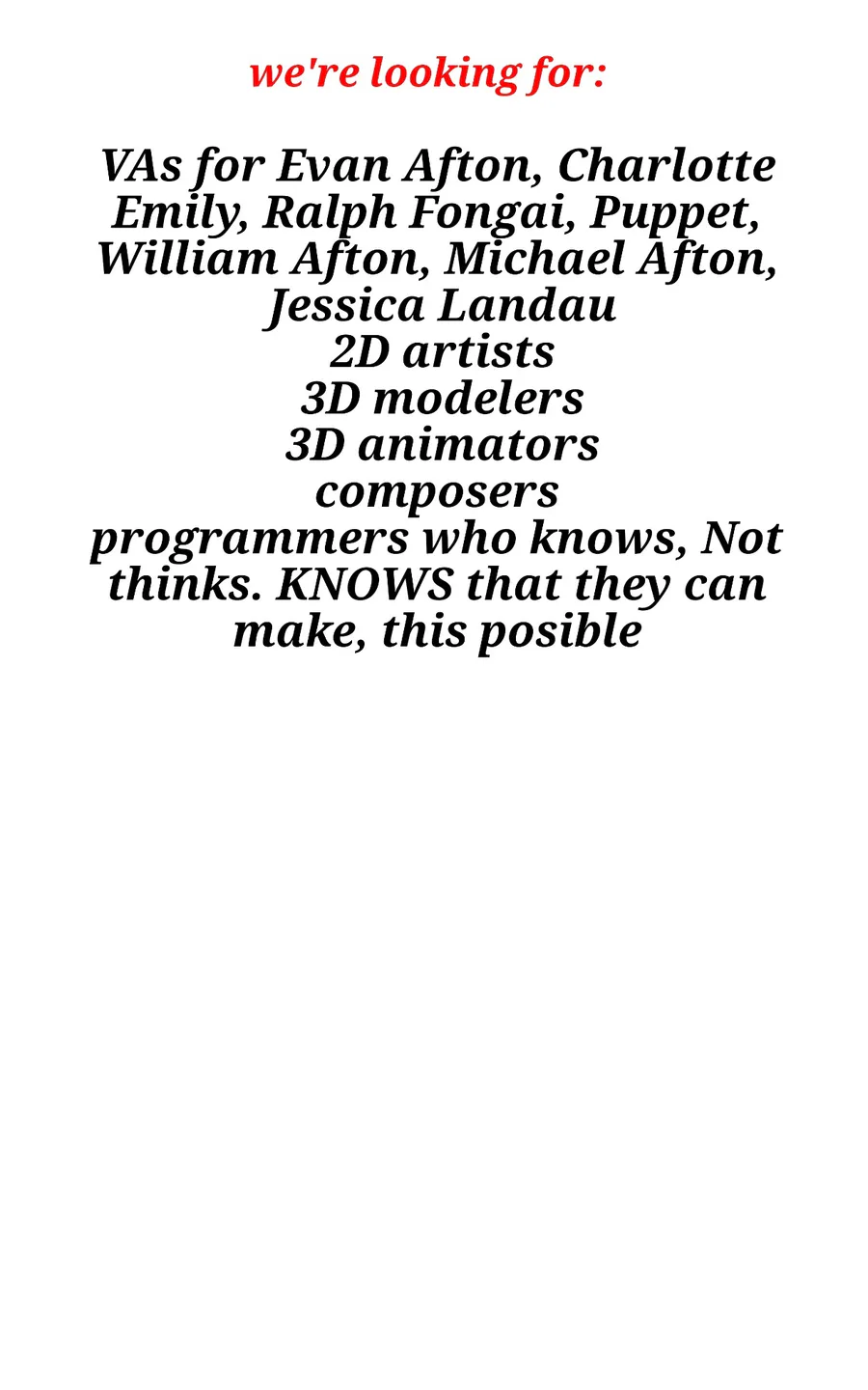 We're looking for staff!