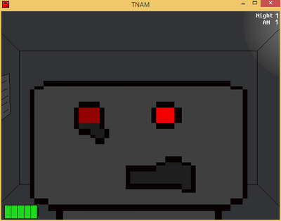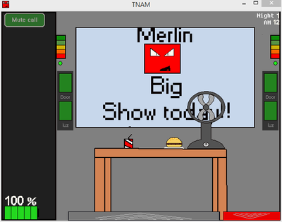 Behind you, there's a robot carcass that was destroyed in the last show, it's going to be fixed for use at the next show, but for now it's being kept in a small room behind you. Do not let it leave this room when He open the door, close before he leaves, if this happens, there is no escape.