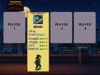 Finally! Here is a modded version of Rescue Palooza I've been working on for the past 6-10 days or so! This Will Mark Release 1.0. I've custom made the Last Ronin Into a Playable character for TMNT Rescue Palooza. This mod is an Overhaul currently still being updated. It Features the Character, some stage edits and a Fan Feature Film. A Ronin mode that is a remix of palooza with no continues.. This is my first mod and i'm happy to share it with you!