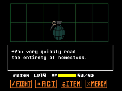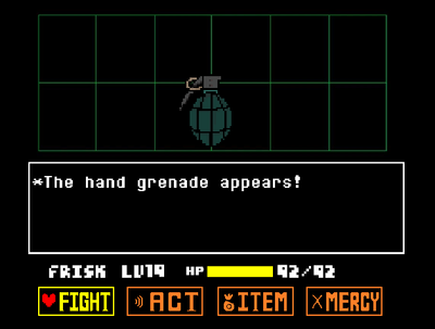 An Undertale fangame where you fight a hand grenade.