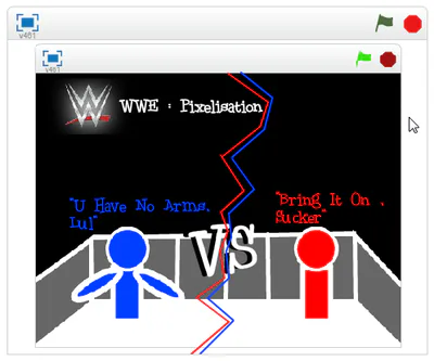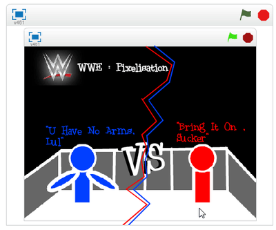 WWE: Pixelisation Is A Wrestling Game Made For The Purpose Of Fighting , The Game Is In Progress And Is Only Available For 1 Player. The Point Of The Game Is To Fight A Person And Pin Them Down For A Maximium Of 3 Seconds , The Game Contains Violence But No Blood , This Game Is Suggested For People Over 7+ , This Game Is A 2D Replica Of The Original Game/Sport.