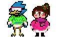 Frisk with the Perseverance soul, Chara with Asriel, Toriel with Asgore, Sans with Papyrus, Monsterkid with Berdley, Napstablook with Mettaton, Alphys with Undyne and Temmie with the Annoying dog.