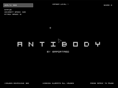 A N T I B O D Y is a top-down shooter game where you play as an antibody (hence the title xd). Your goal is to eliminate all the spawning viruses.