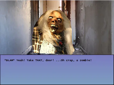 There are three distinct paths through the game, featuring zombies, aliens and... kissing a dog, which will lead you to one of two endings. As a result, I suggest you play through the game at least three times in order to experience all of the dialogue, because it's pretty good (if I do say so myself).