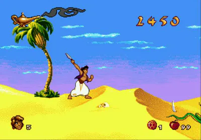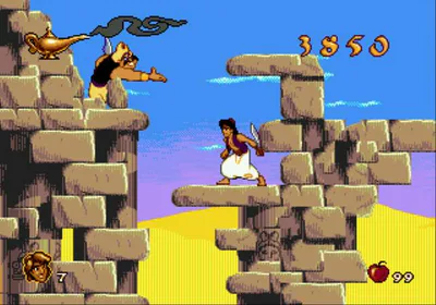 While exploring an old store downtown, he finds a dusty Aladdin cartridge for the console. Although its label is somewhat worn, the logo of the game based on the Disney film is still clearly visible. Without hesitation, he buys it.