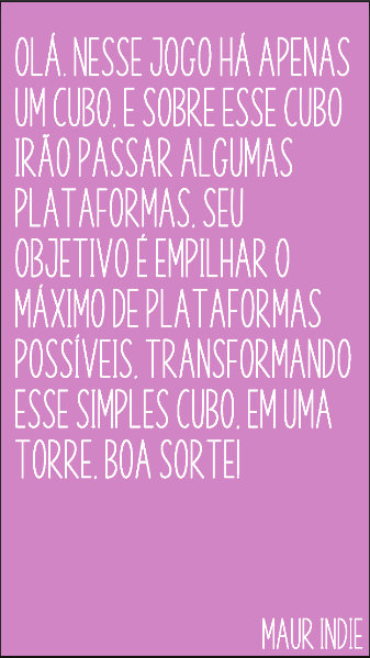 faça a maior torre que conseguir com as plataformas que irão aparecer ao passar do tempo