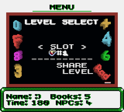 3 Save Files with 4 Level Slots each. (Up to 12 Levels in Total!)