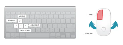 A W S D to move the ship (Left, Up, Down, Right)