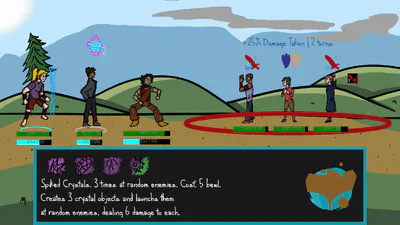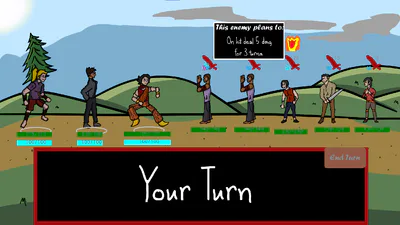 In this turn-based fighting game you will take charge of the squad of armed up sorcerers from the distant island, utilising their kits of various world elements on their way to defeating the opposing forces of evil! Explore, level up, defeat bosses, and possibly find mysterious entity outside of the border of the island...?